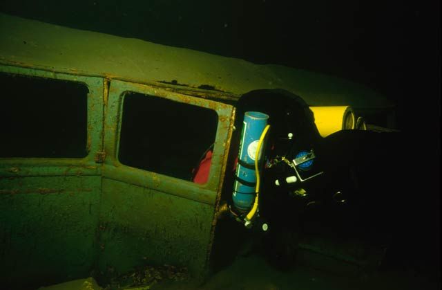 Zajímavá lokalita se nalézá hned u tzv. Hausriffu“- školy potápění Montain Diving Austria v Obertraunu. Zde se v hloubce 30metrů ukrývají dva busy VW. Spodní lze proplavat, podrží-li vám kamarád otevřené dveře.